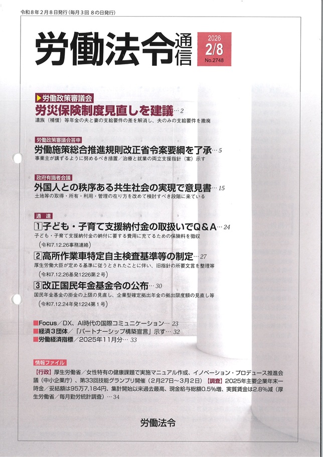 ■ 厚生労働省関係(社会保険関係含む)の法律に関する研究会及び検討会報告書をはじめ、各審議会の状況、法律の立案から国会での審議状況及び公布・施行に至るまでの経緯を速報するとともに、各省庁担当官による解説を紹介。さらに、関係政省令・告示及び通達を随時掲載。厚生労働省等政府の新政策等を速報。