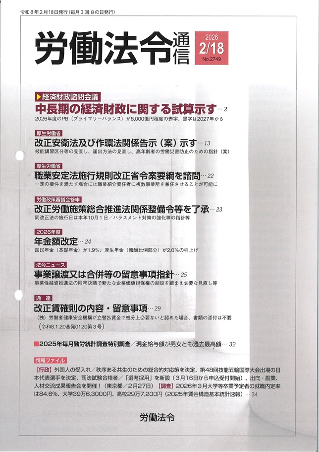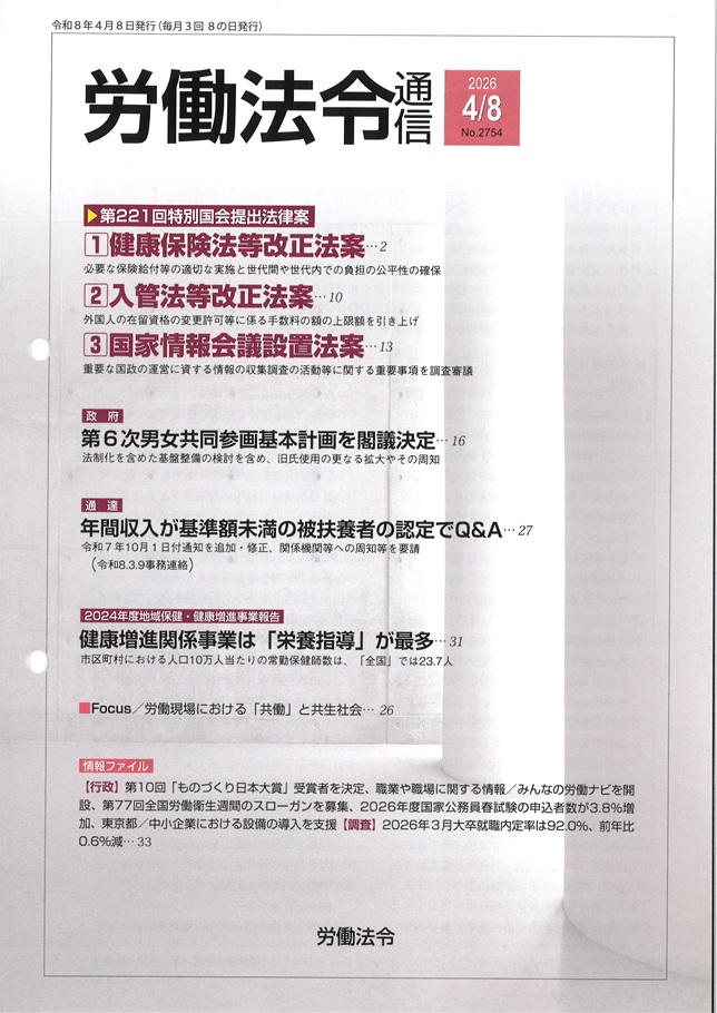 ■ 厚生労働省関係(社会保険関係含む)の法律に関する研究会及び検討会報告書をはじめ、各審議会の状況、法律の立案から国会での審議状況及び公布・施行に至るまでの経緯を速報するとともに、各省庁担当官による解説を紹介。さらに、関係政省令・告示及び通達を随時掲載。厚生労働省等政府の新政策等を速報。